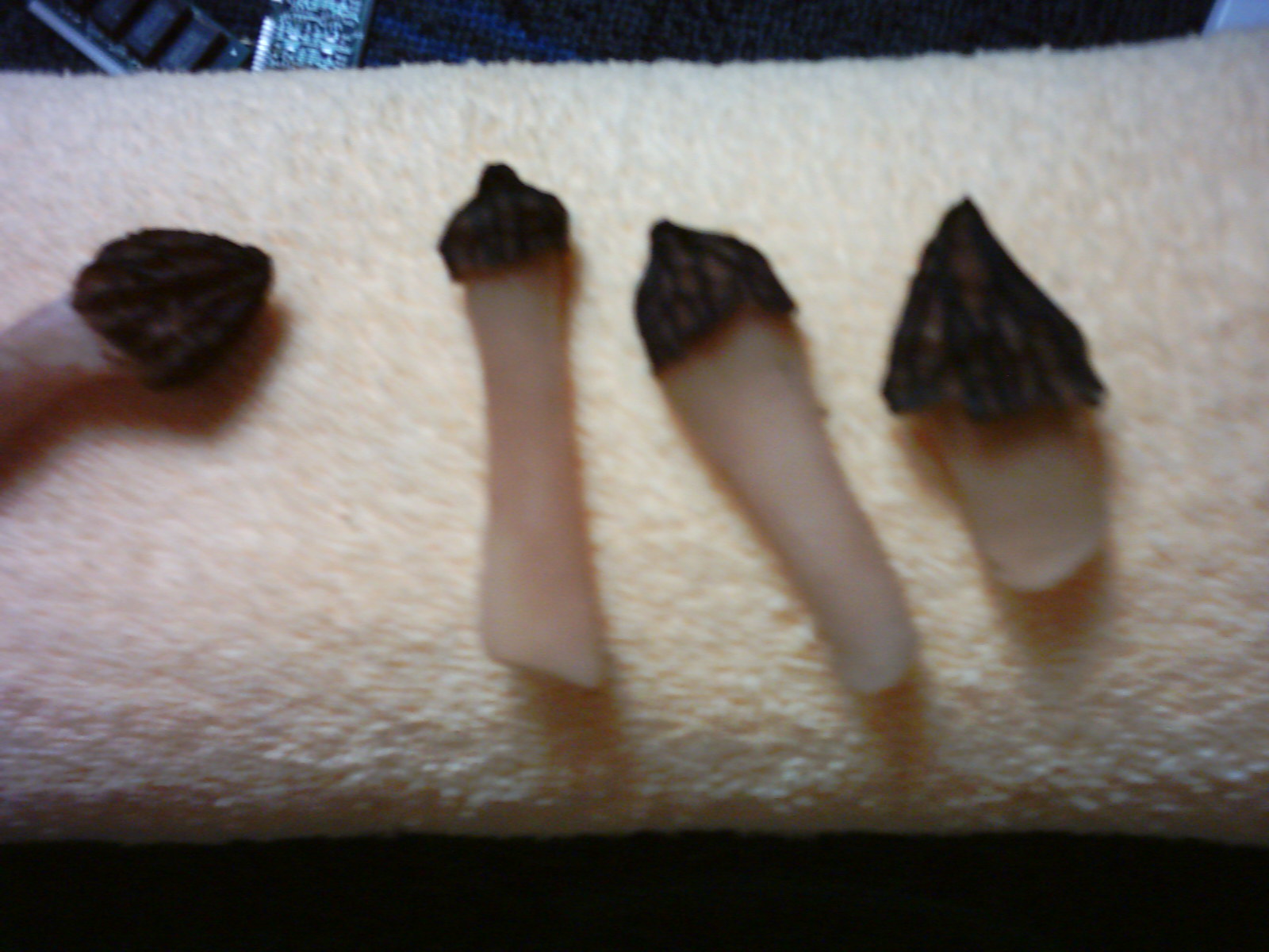 hallo habe heute morcheln gesucht und gefunden.kenne mich etwas aus.müssten spitzmorcheln sein .aber die sind irgendwie anderst als die jahre zuvor .meine ich !haben nur einen kleinenopf und riesen stamm.