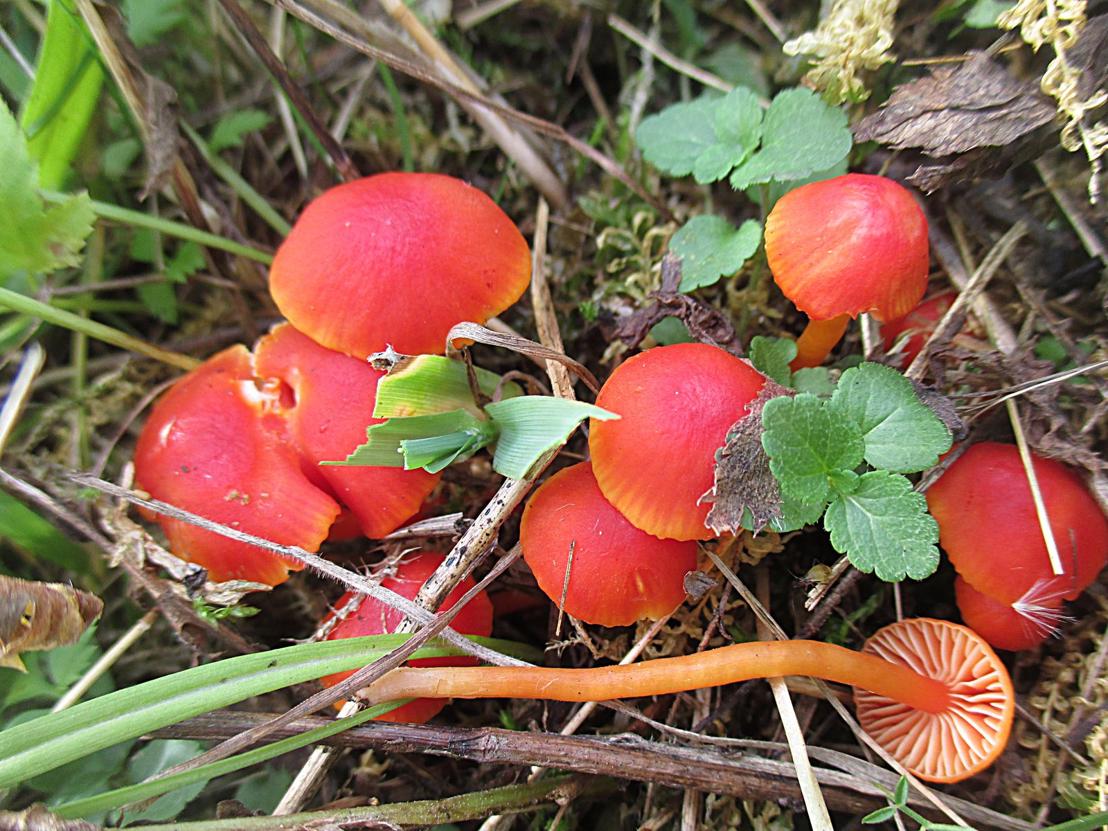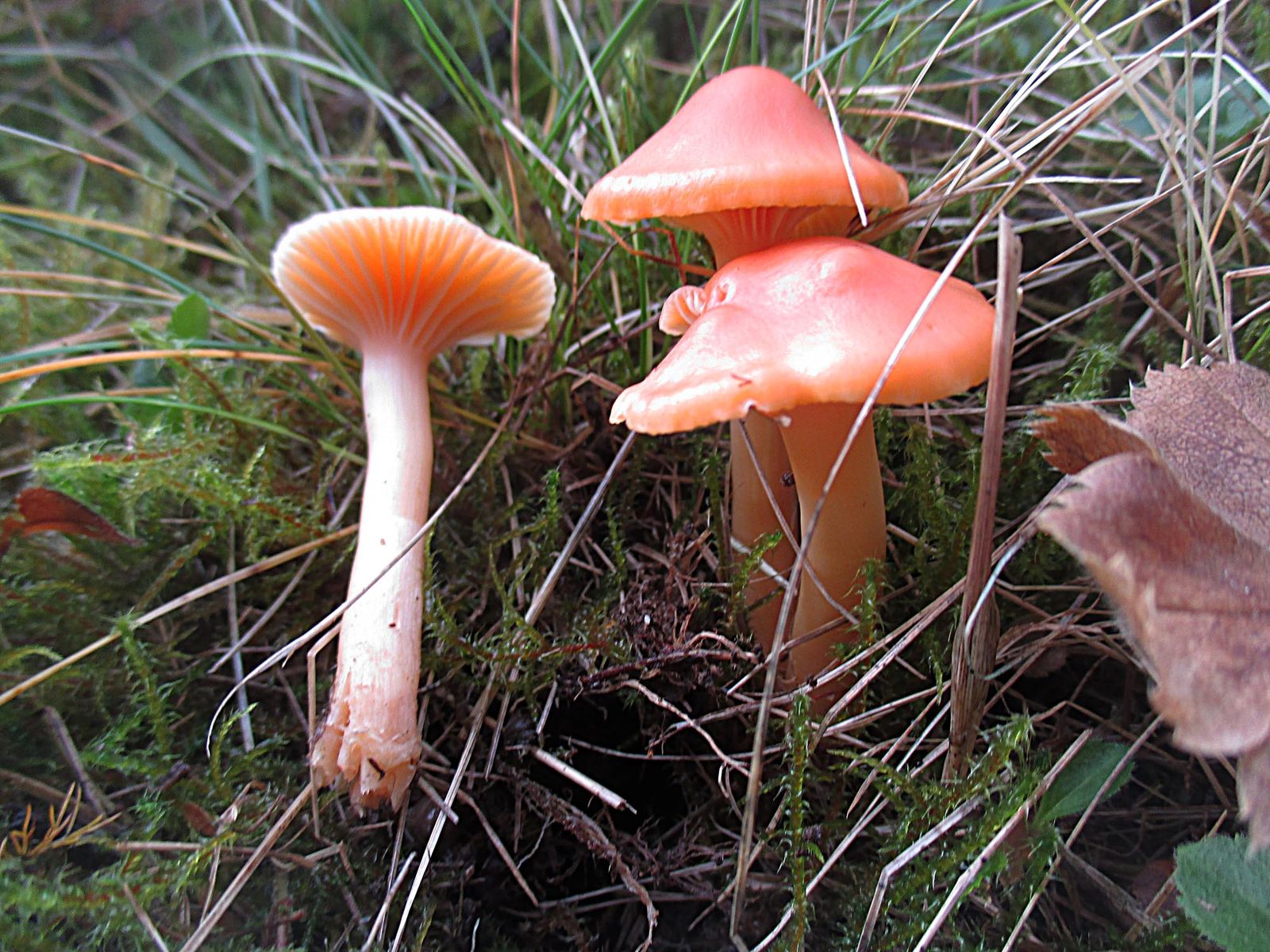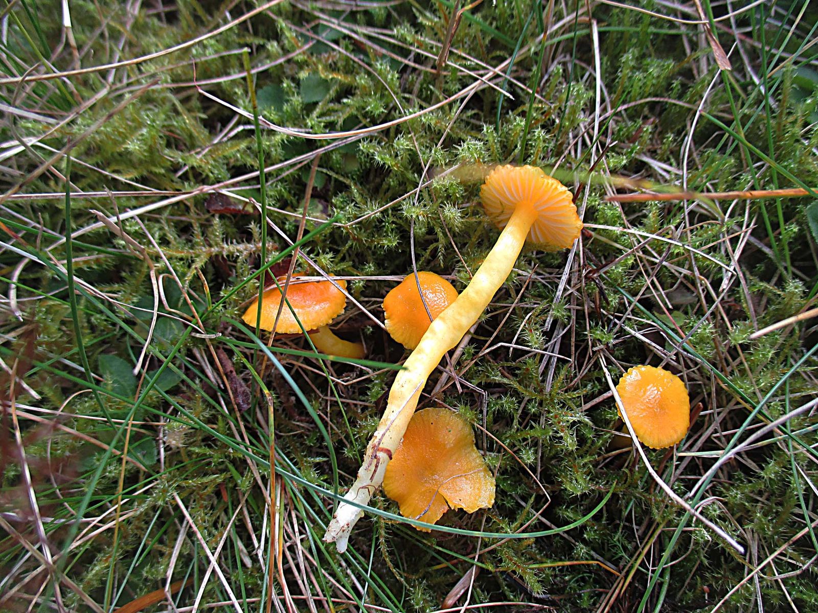 Bei der zweiten Gruppe haben wir Hygrocybe mucronella, den Bitteren Saftling vermutet aber die waren nur leicht bitter. Daher gibt es hier starke Zweifel an der Bestimmung. Ich kenne die nur extrem bitter.