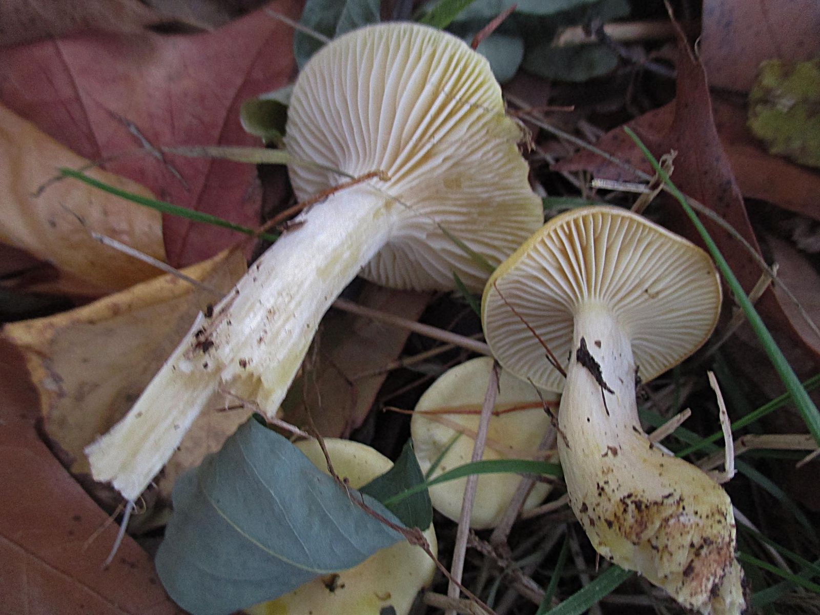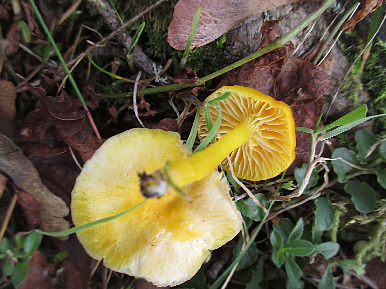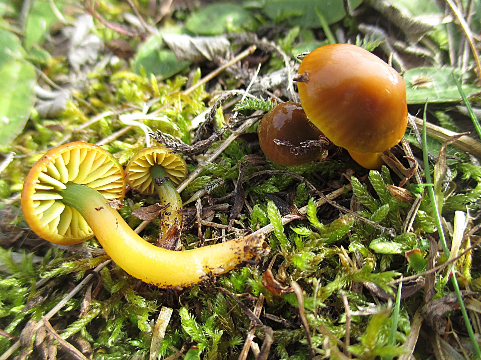 Dann kamen wir zu zwei Grüppchen von Saftlingen die höchsten 10 cm voneinander getrennt waren. Der ersten war extrem schleimig aber eher nicht H. glutinipes.