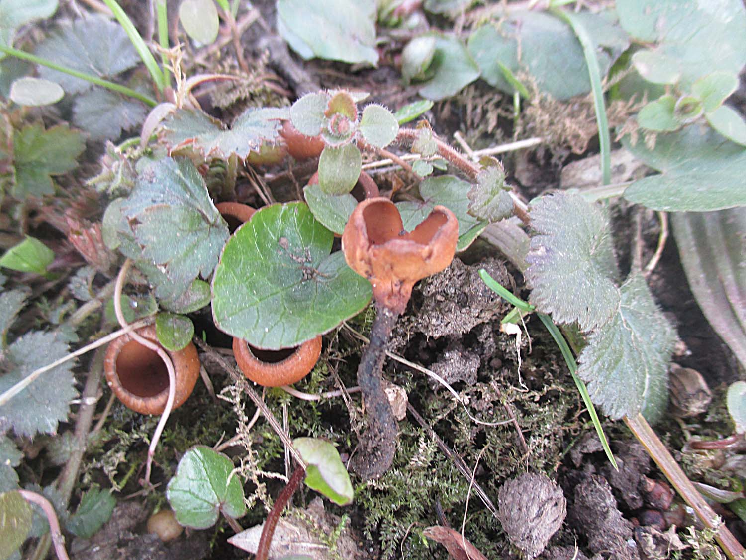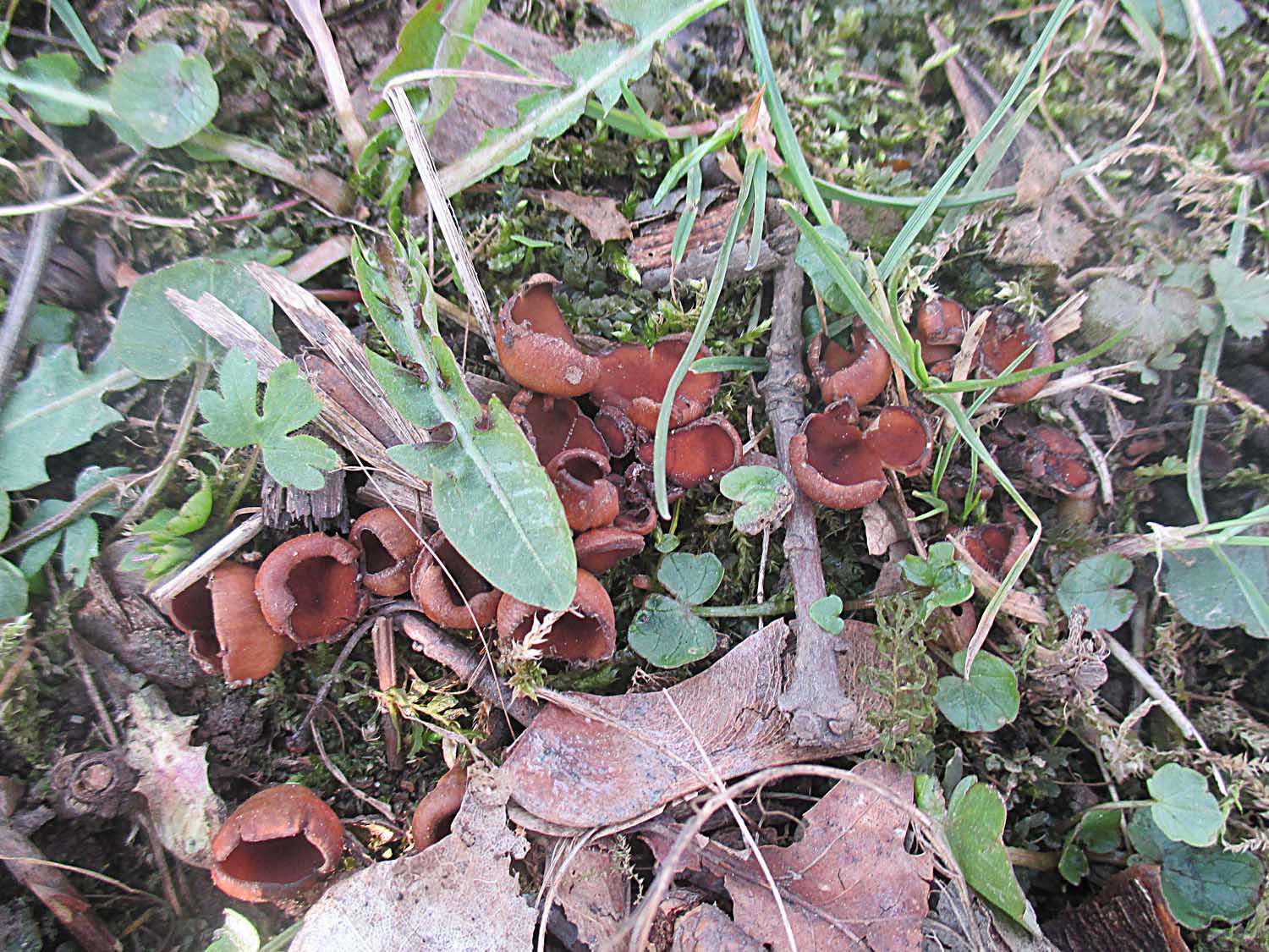 Dies Becherlinge würde ich Scharbockskraut-Sklerotienbecherling (Sclerotinia binucleata) nennen, da mir am Fundort keine Buschwindröschen aufgefallen sind.