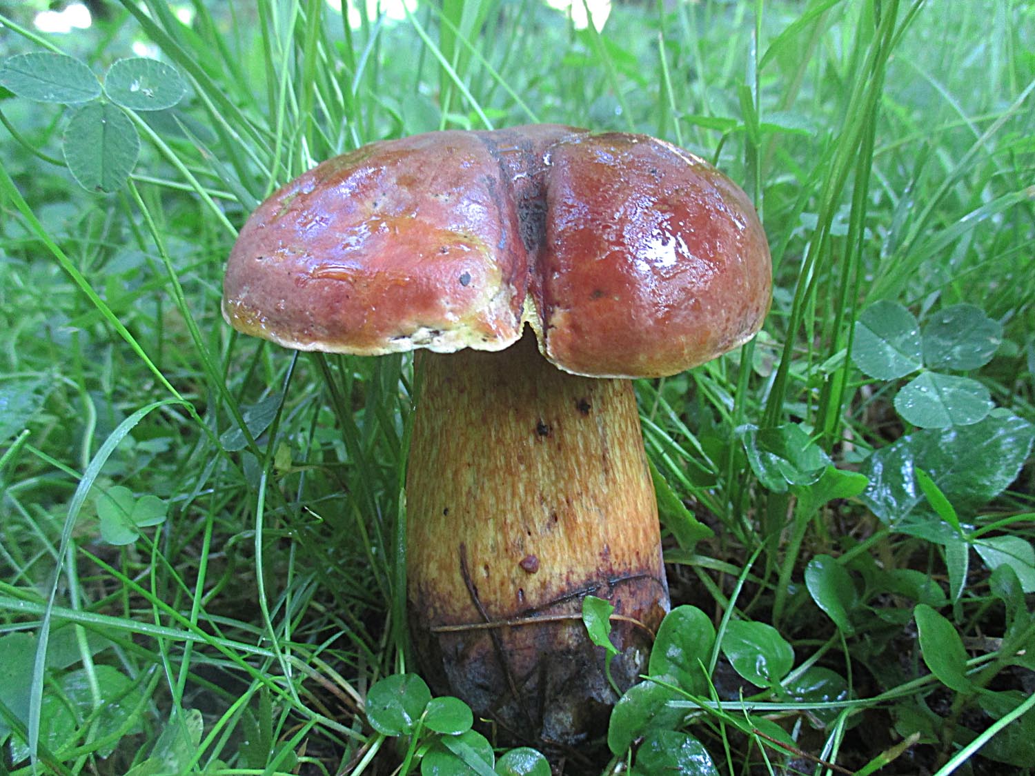 Bei diesen Teilen dachte ich erst an den Rötenden Bitterröhrling (Caloboletus kluzakii) aber das Schnittbild ergab dann doch nur den Wurzelnden Bitterröhrling (Caloboletus radicsans)