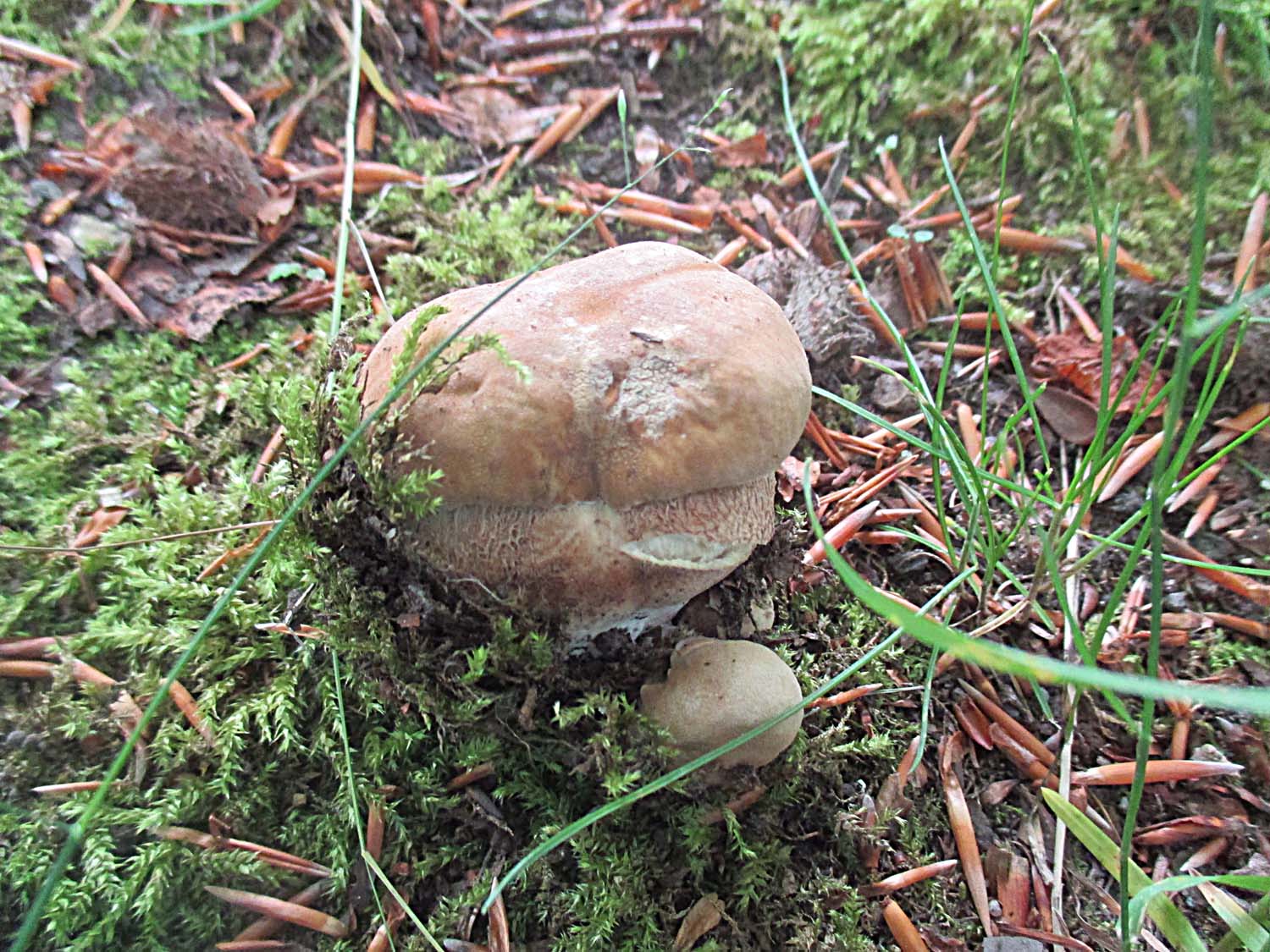 Am bekannten Standort hatten sich wieder junge Fahle Röhrlinge (Hemileccinum impolitum) hervorgetraut.