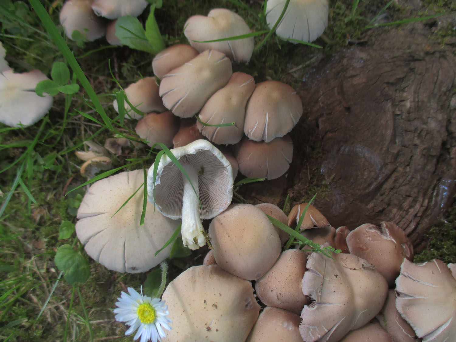 Außerdem gab es einen Trupp vom Ockerbraunen Trichterling (Clitocybe gibba).