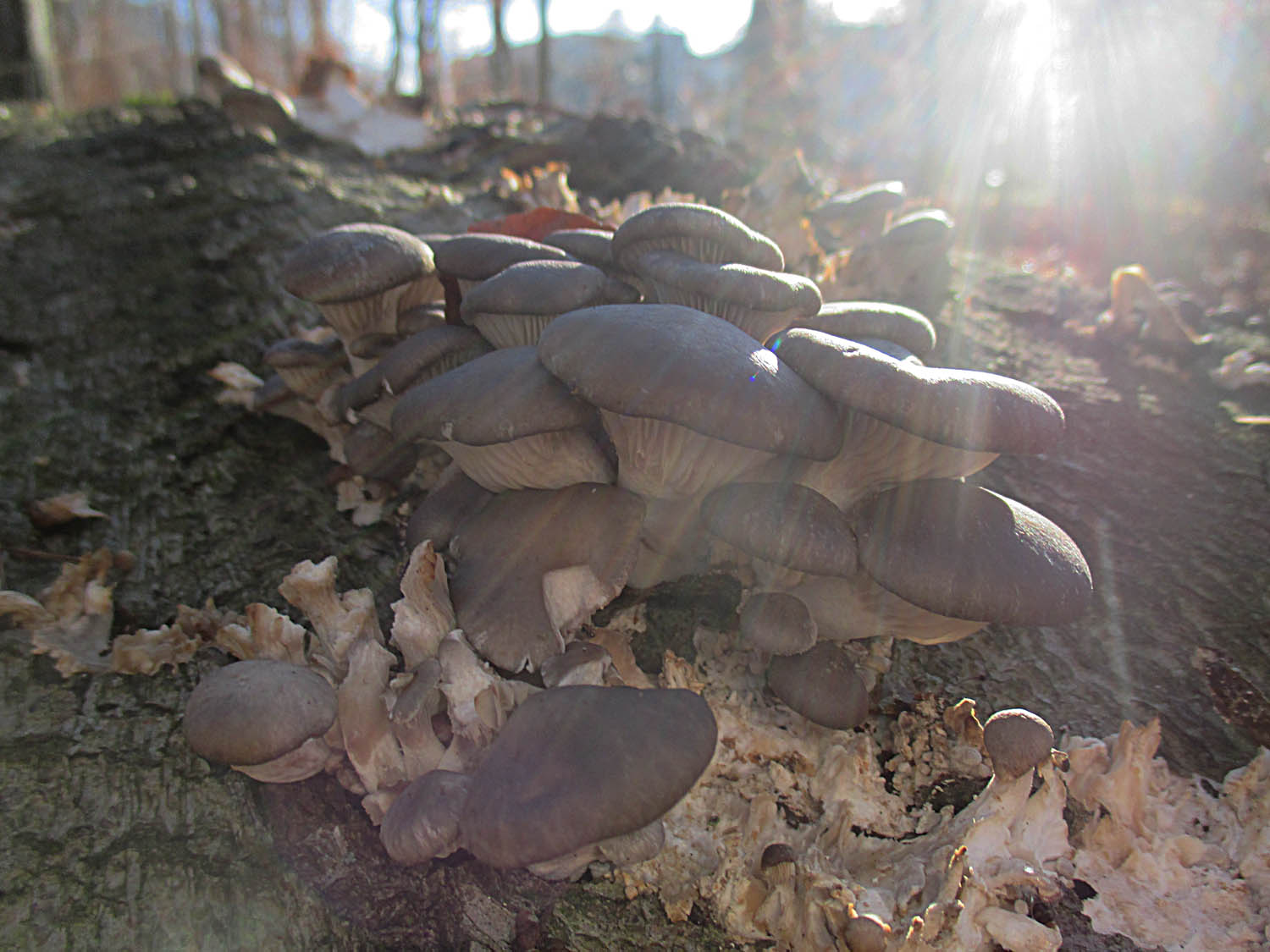 auf Deinem ersten Austernbild sind im Hintergrund und etwas unscharf Schleimpilze zu sehen.