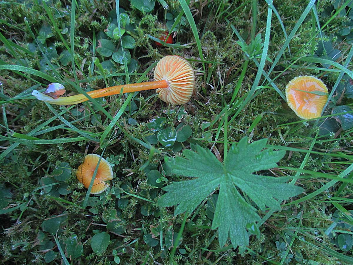 und zum Schluß habe ich hier noch ein paar unbestimmte Saftlinge (Hygrocybe spec.)