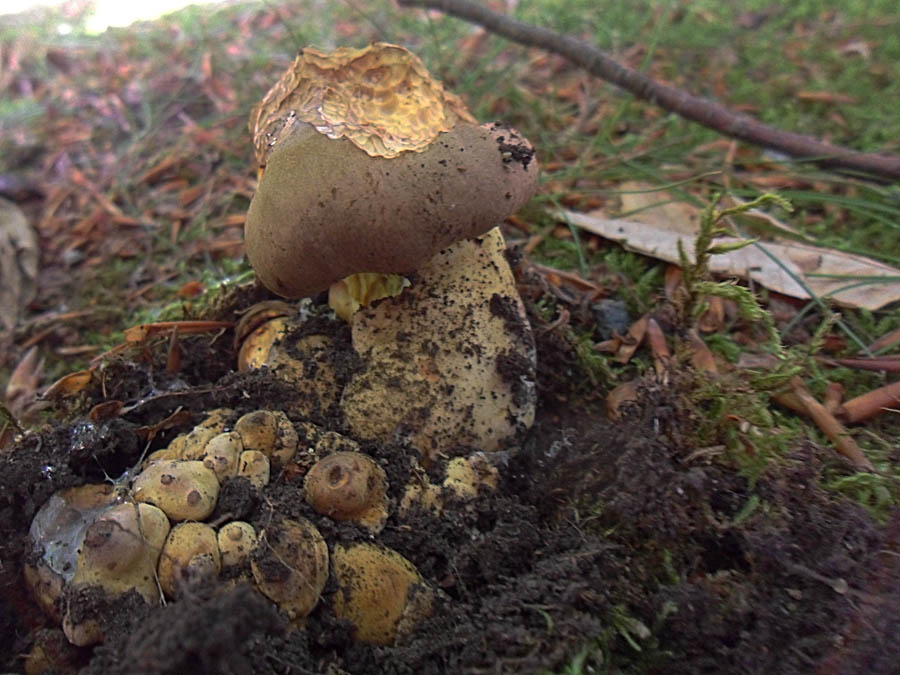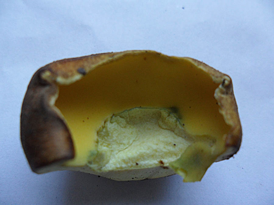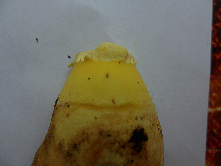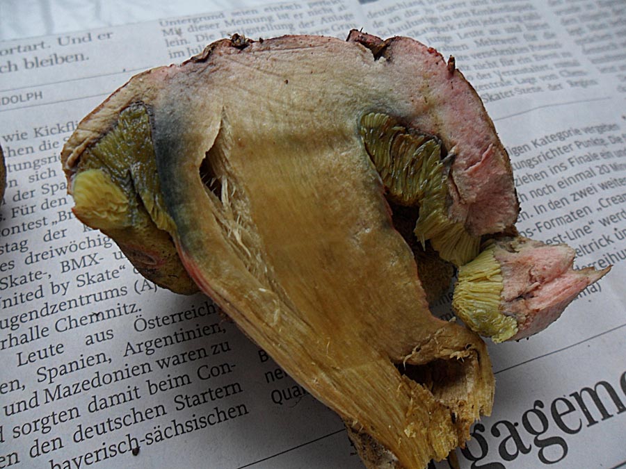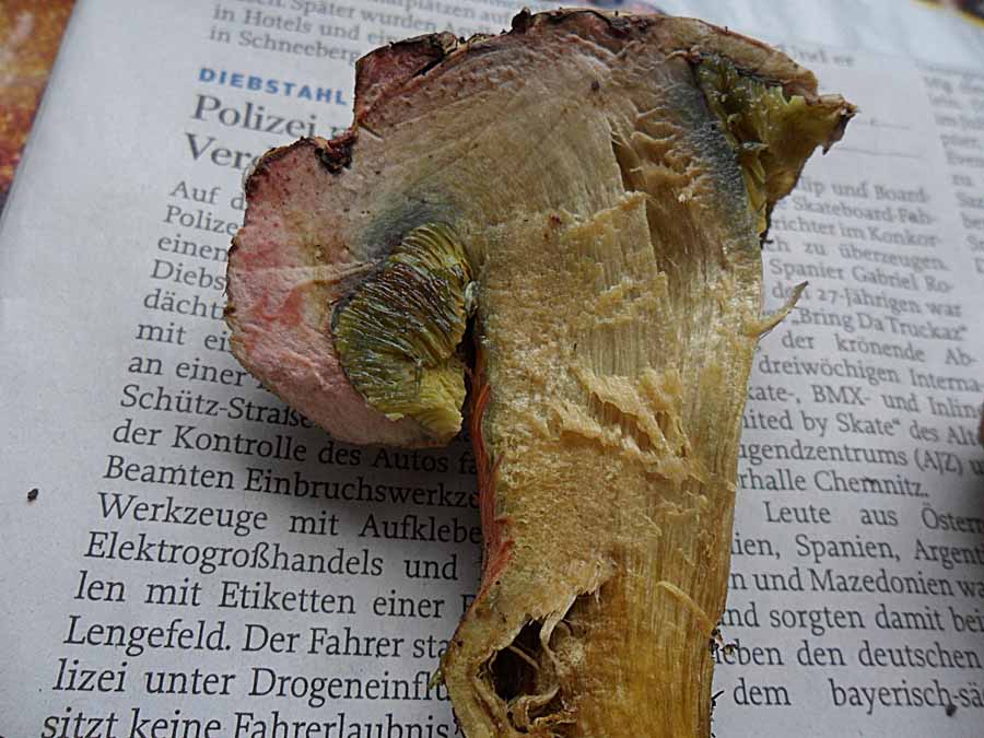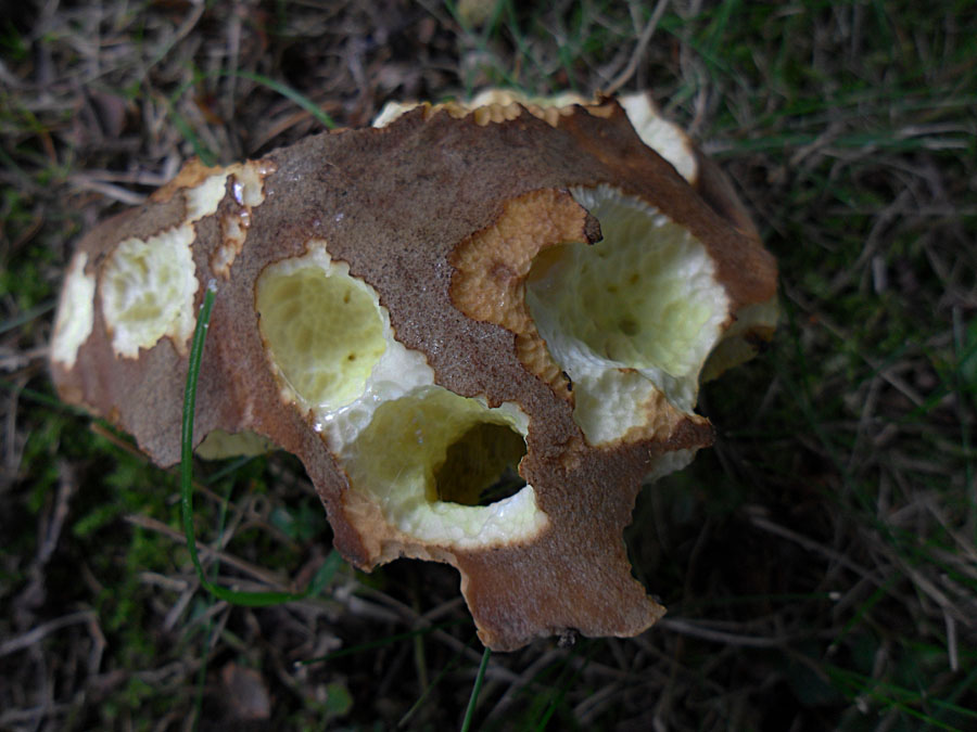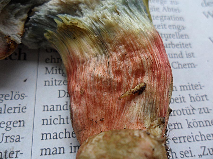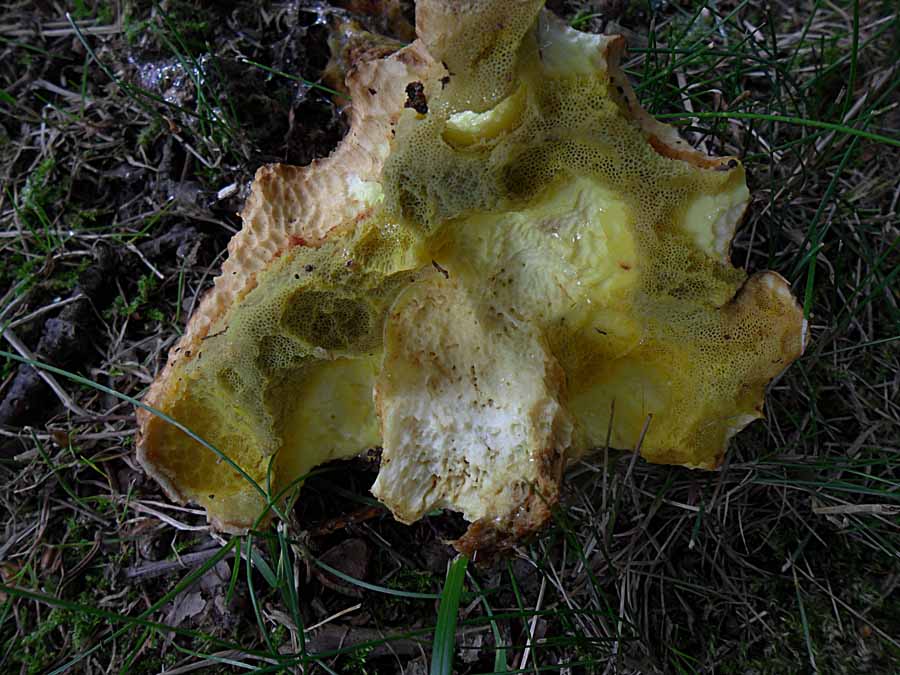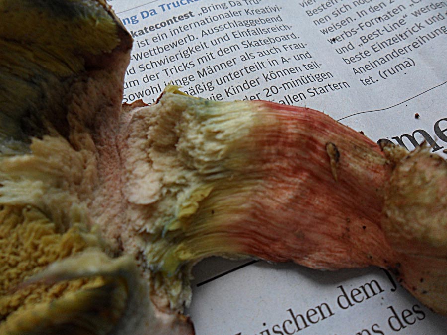 VETO bei dieser Bestimmung muß ich es einlegen. Kein Ring ist in Sicht (Glauben gehört in die Kirche) und irgendetwas grauviolettes der Lamellen kann ich auch nicht erkennen. Die gelbe Form von Stropharia rugosoannulata habe ich schon viel gesehen aber so noch nicht (was nicht viel zu bedeuten hat). Einen besseren Vorschlag habe ich leider auch nicht