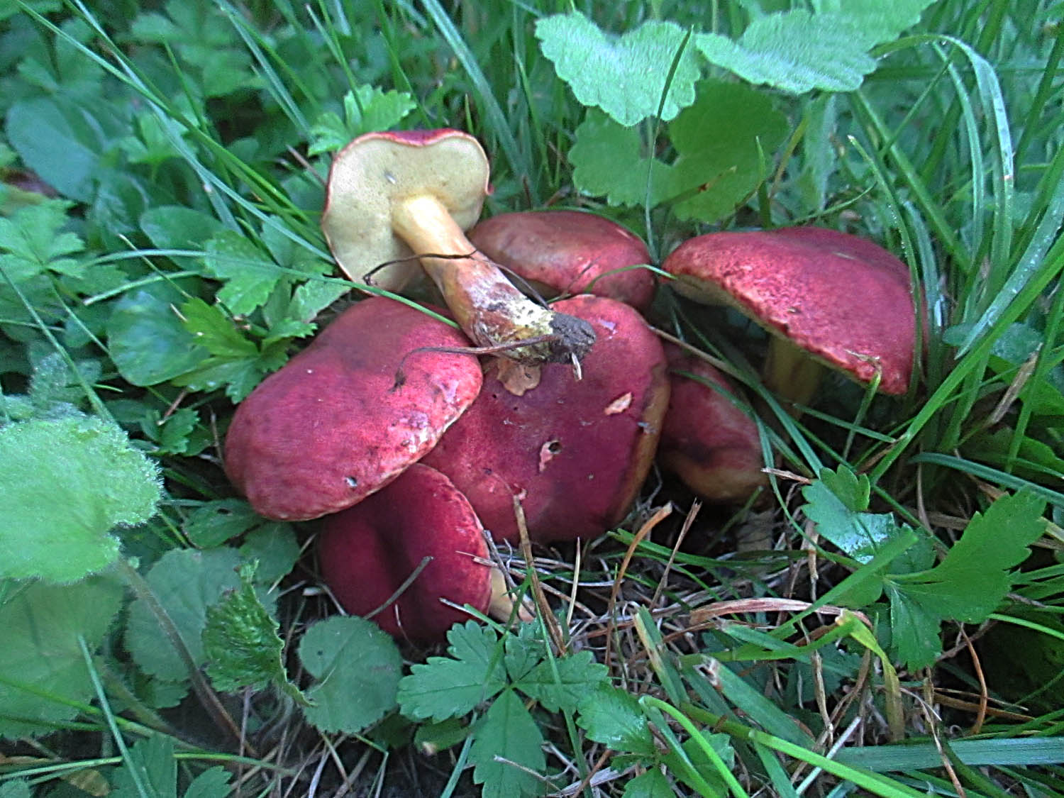 Diese hier haben eine Wohngemeinschaft mit Blutroten Röhrlingen (Hortiboletus rubellus) gebildet.