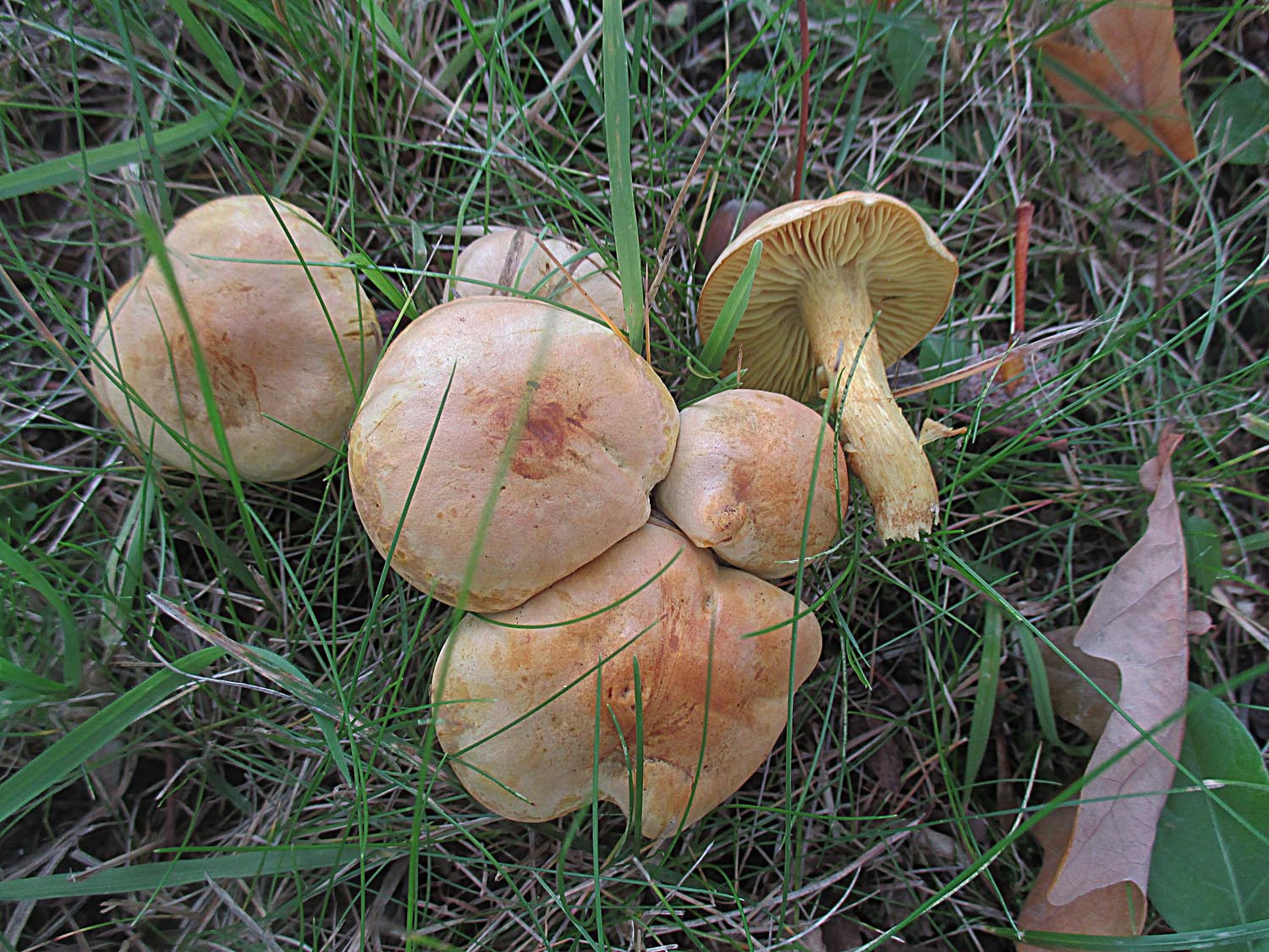 die mußt Du noch ein wenig wachsen lassen und dann ohne etwas abzuschneiden heraushebeln. Als nächstes müssen Fotos von allen Seiten gemacht werden und dann noch ein Schnittbild vom ganzen Pilz. Geschnitten wird dabei von der Hutspitze bis zur Stielbasis. Dann werden wir schon herausbekomen um welchen Safranschirmling es sich handelt.
