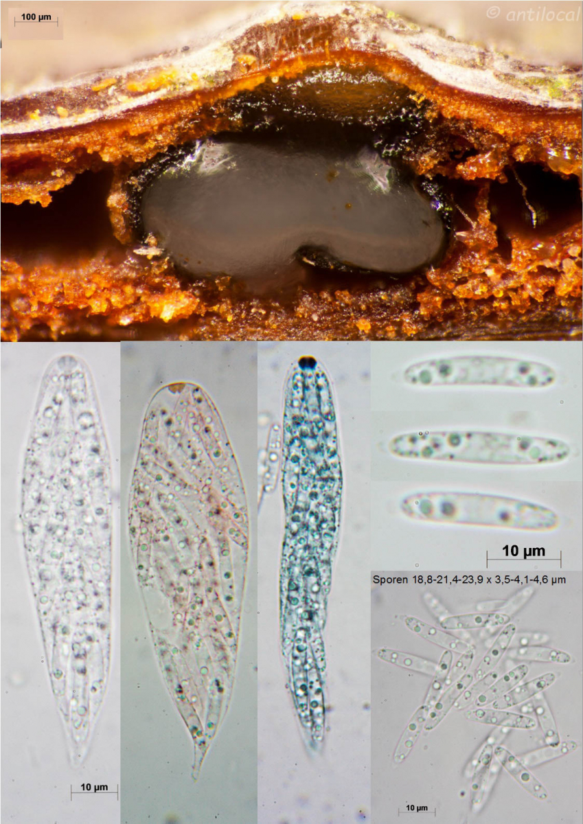 8.einem weitern schönen Fund, konnte ich am 5. Februar an Carpinus machen. Besonders die Sporen mit ihren polaren Gelflügelchen machen diesen Pilz mikroskopisch zum Highlight