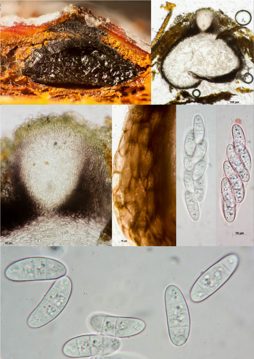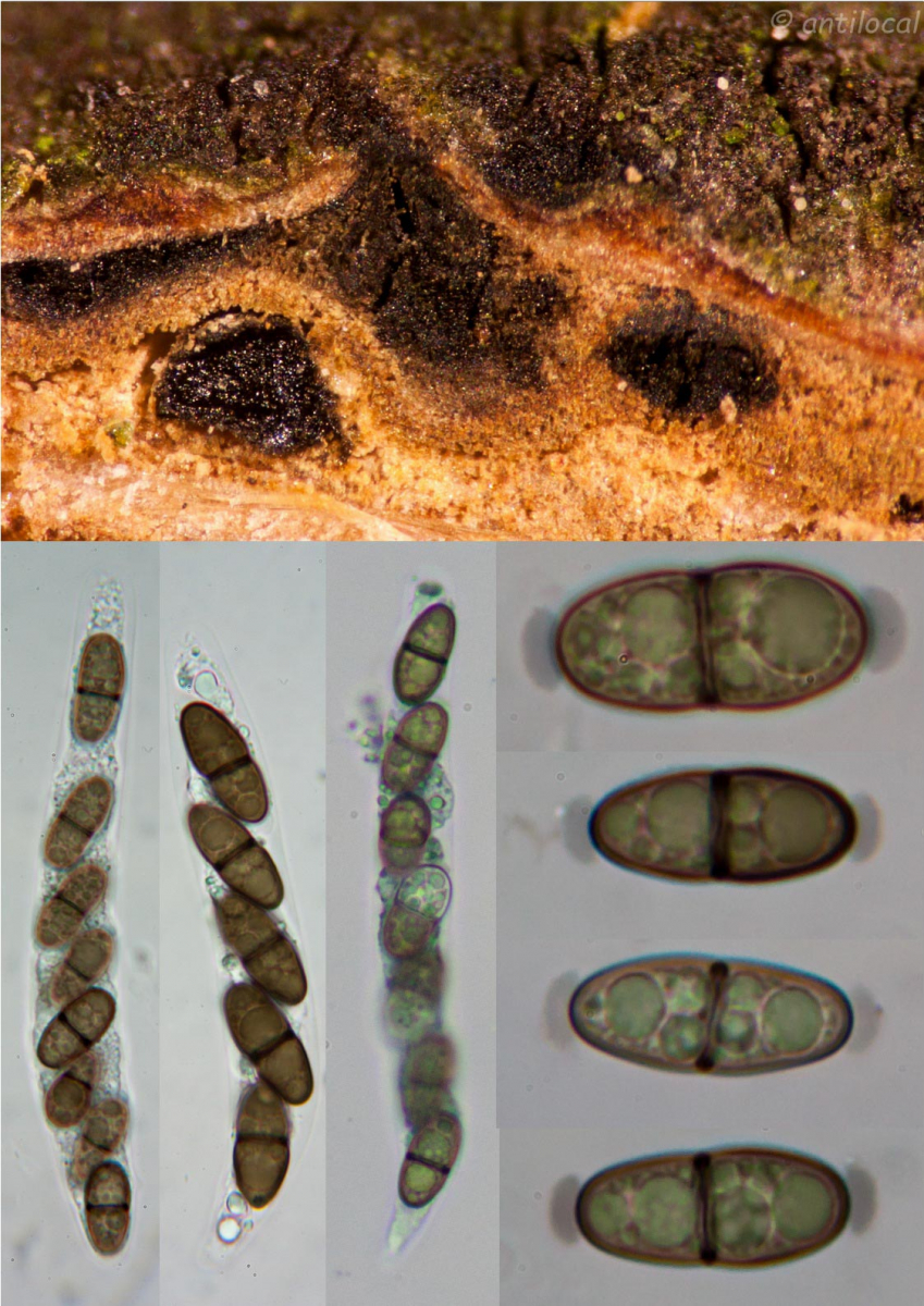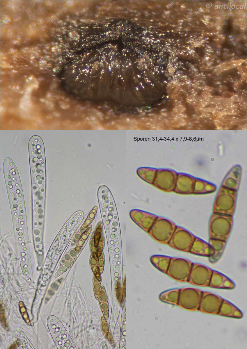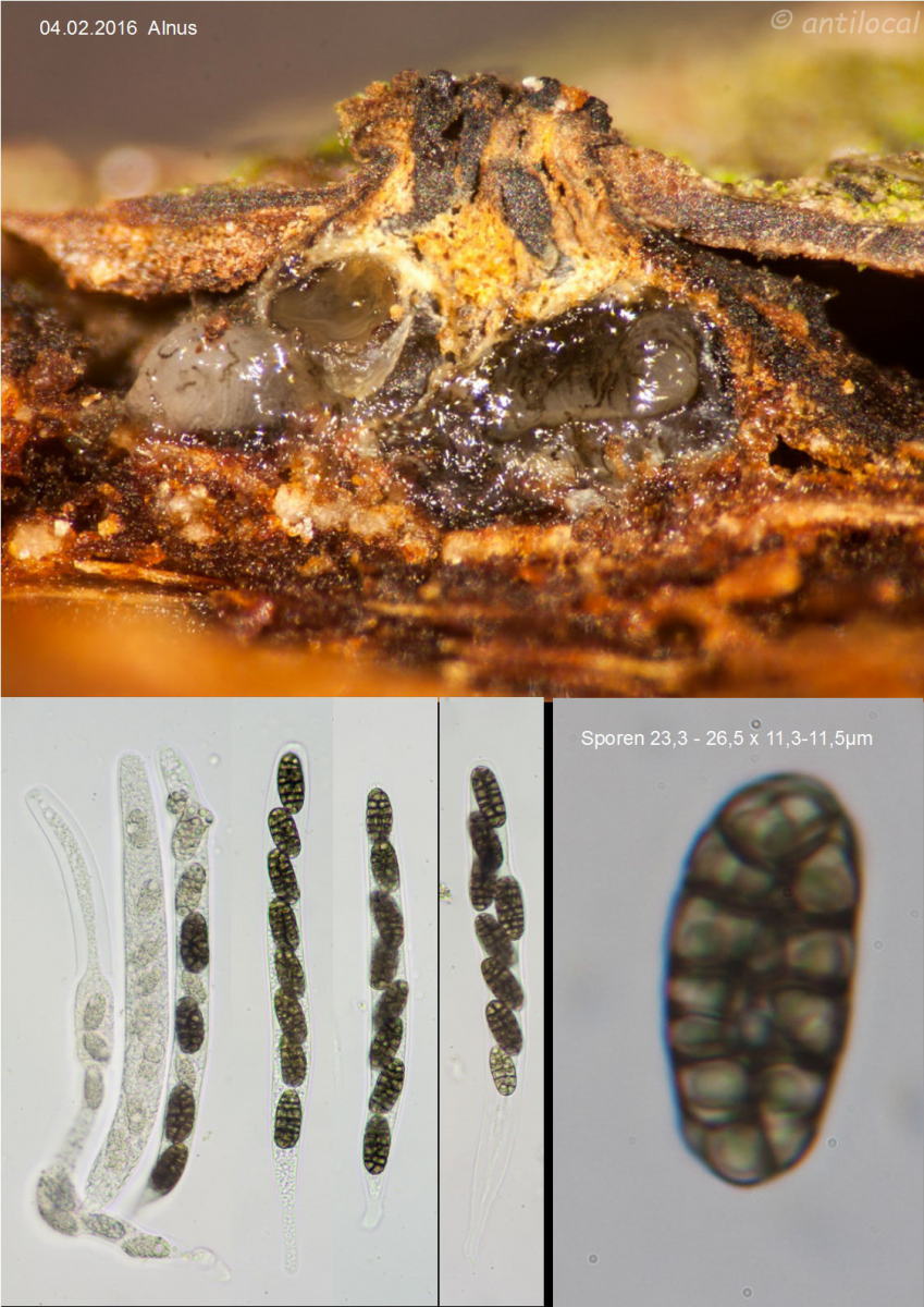 2.ebenfalls an Alnus ist diese Art mit 3fach septierten Sporen zu finden, Phragmoporthe conformis