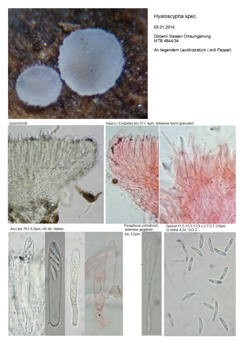 Ich bin zwar relativ sicher, das es sich um einen Pilz der Gattung Hyaloscypha handelt, aber ich komme zu keiner sicheren Bestimmung,