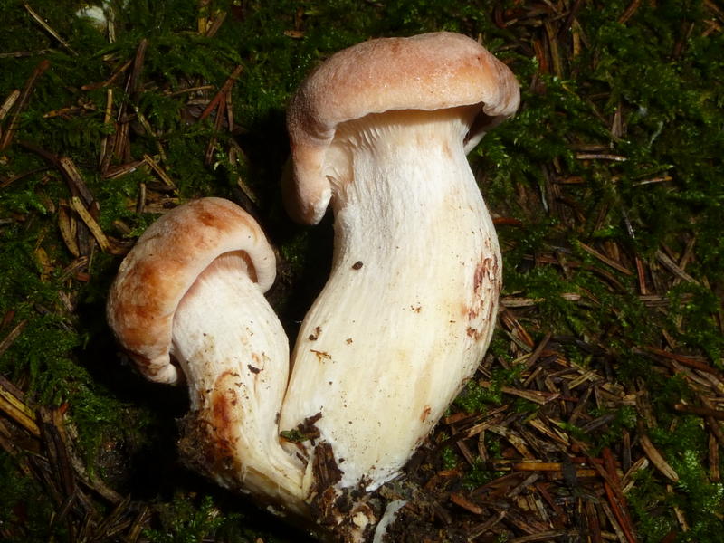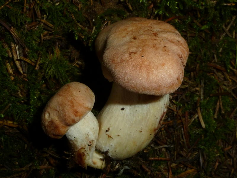 Die Bilder sind alle nichts geworden, es war zu dunkel unter den Fichten. Aber auf den ausgesuchten Bildern stimmen die Farben des Pilzes.