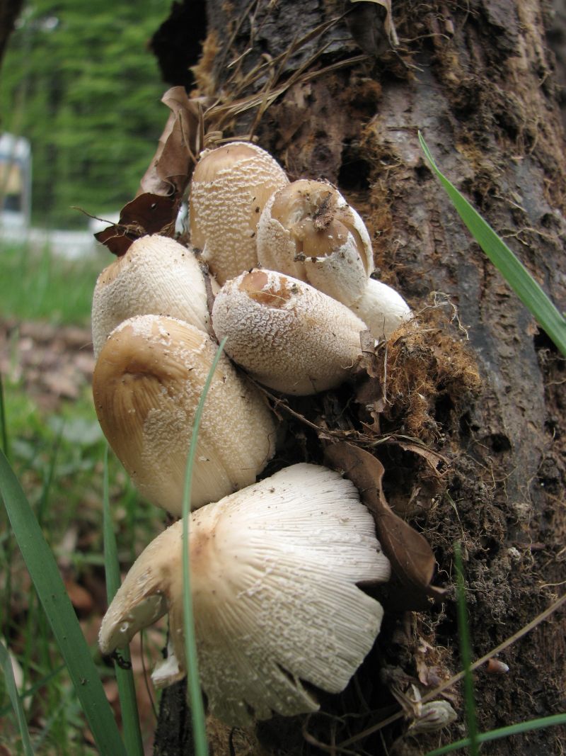 Also Bild 4, 5 u. 6 sind die selben Pilze. Geruch eher etwas muffig, Geschmack eher etwas bitterlich. Er wuchs auf Gartenabfällen im Wald. Stockschwämmchen sind es definitiv nicht, die kenn ich. Obwohl ich sie beim ersten Blick auch dafür hielt. Was mich halt ratlos machte waren die grauen Lamellen und der weißliche Stiel. Vieleicht Weisstieliges Stockschwämchen (Psathyrella piluliformis )