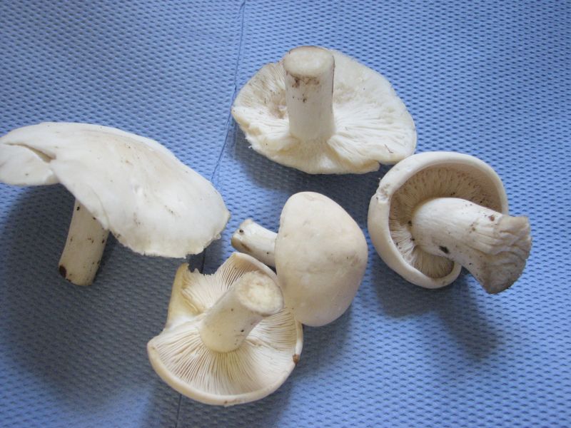 Die weißen auf den ersten Bildern sind wohl Mairitterlinge aber bei den anderen bin ich mir nicht sicher.