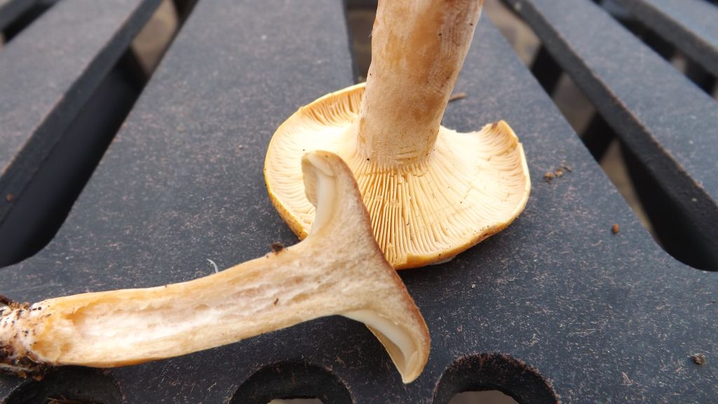 Nummer 7: Erinnerte mich ein wenig an Lacktrichterlinge. Stiel ebenfalls hohl.