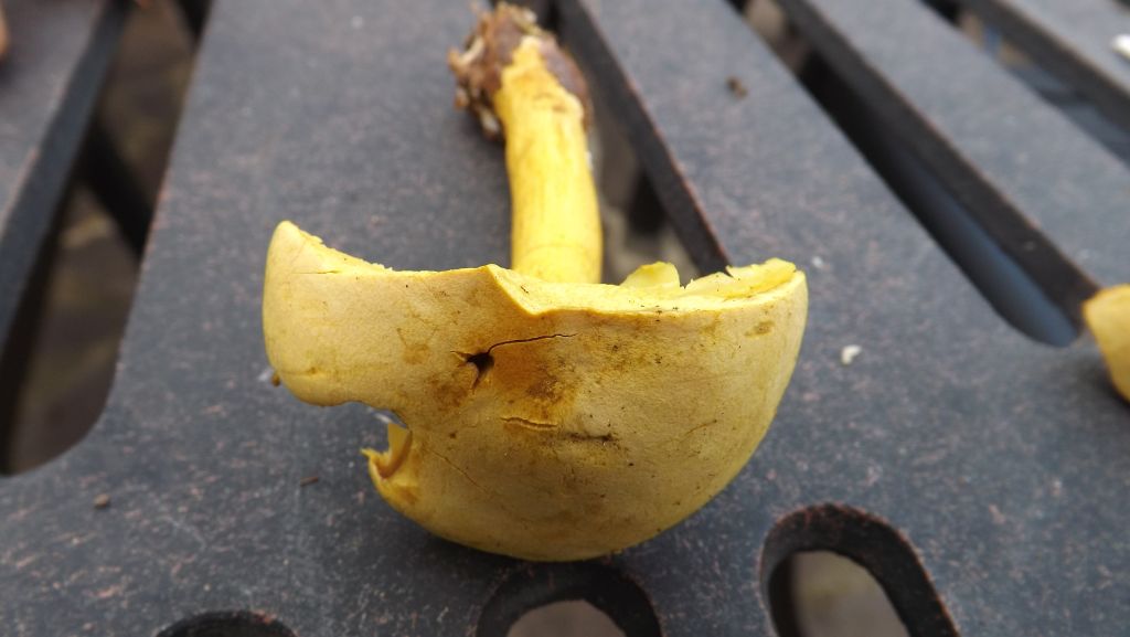 Nummer 8: Leuchtend gelb, Standort unter einer Buche, Geruch: im Wald roch er deutlich unangenehm, zu Hause roch er dann v.a. süßlich.