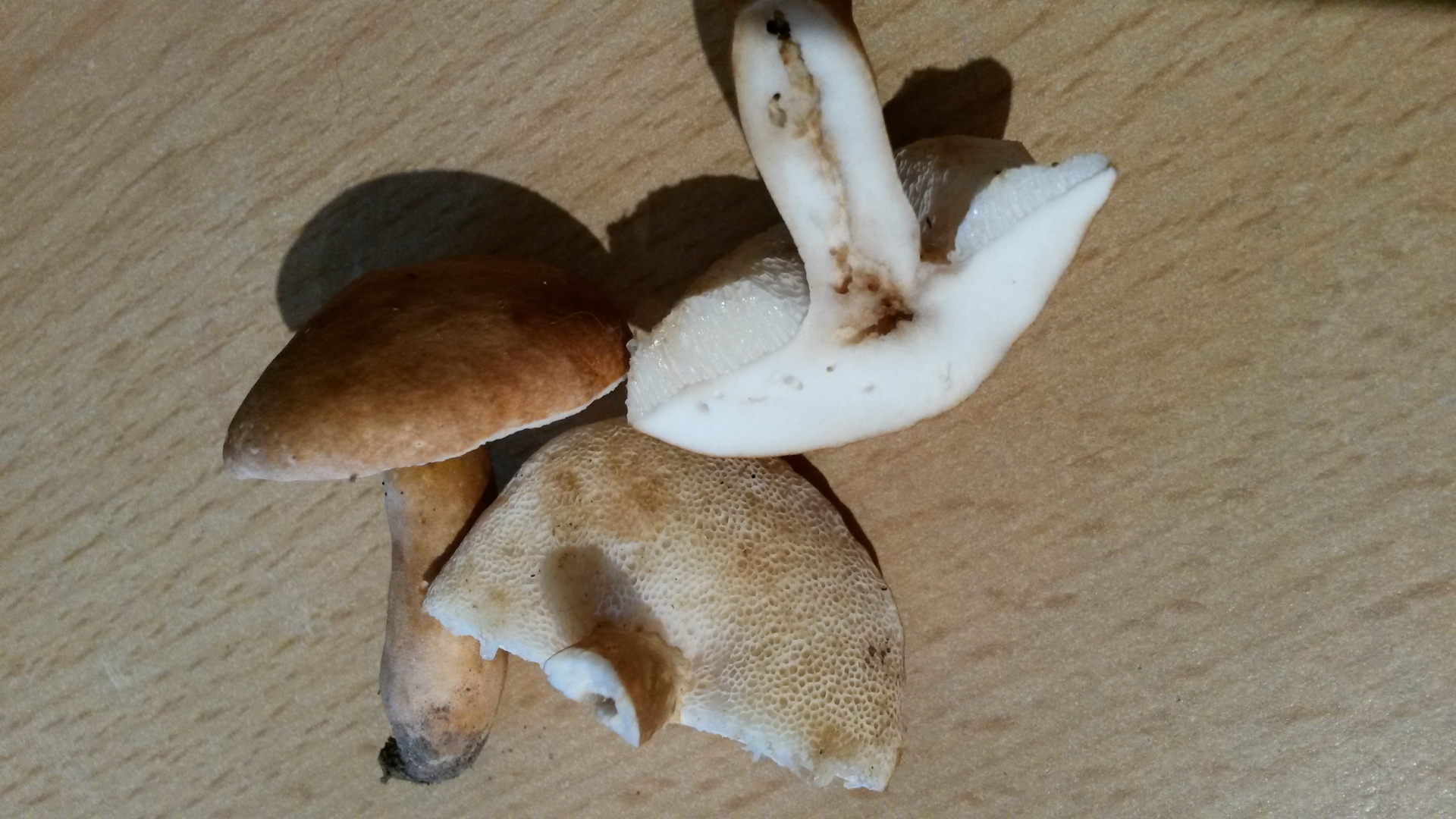 beim Birkenpilz (L. scabrum) findet nahezu keine Verfärbung des Fleisches statt. Bei den übrigen Rauhfüßen und Rotkappen ist die Verfärbung recht stark (violett bis schwarz).