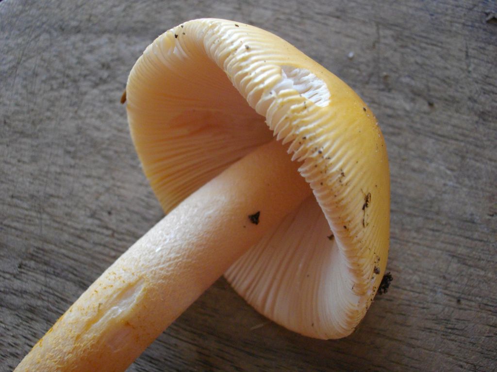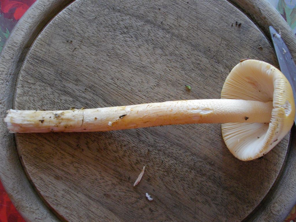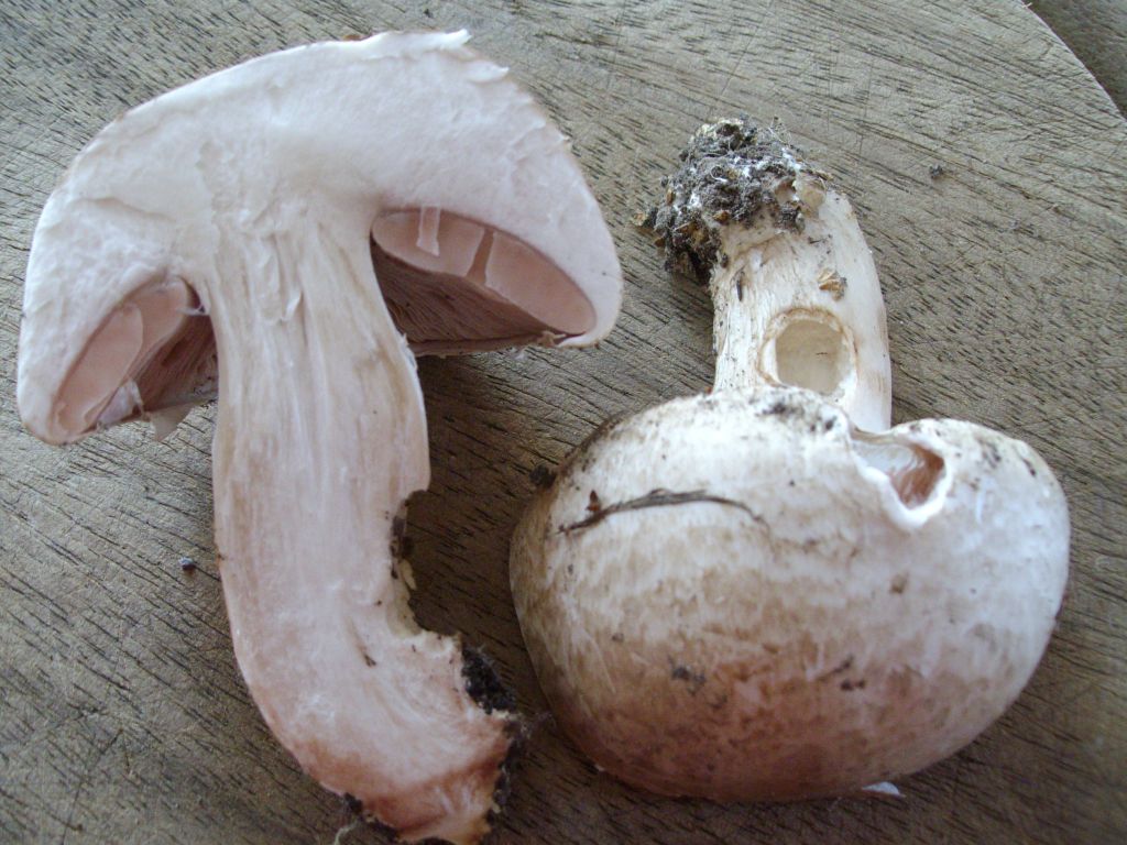 Beim Aufschneiden verfärbt sich dieser nur schwach und zwar eher bräunlich bzw. rötlich an der Stielbasis.