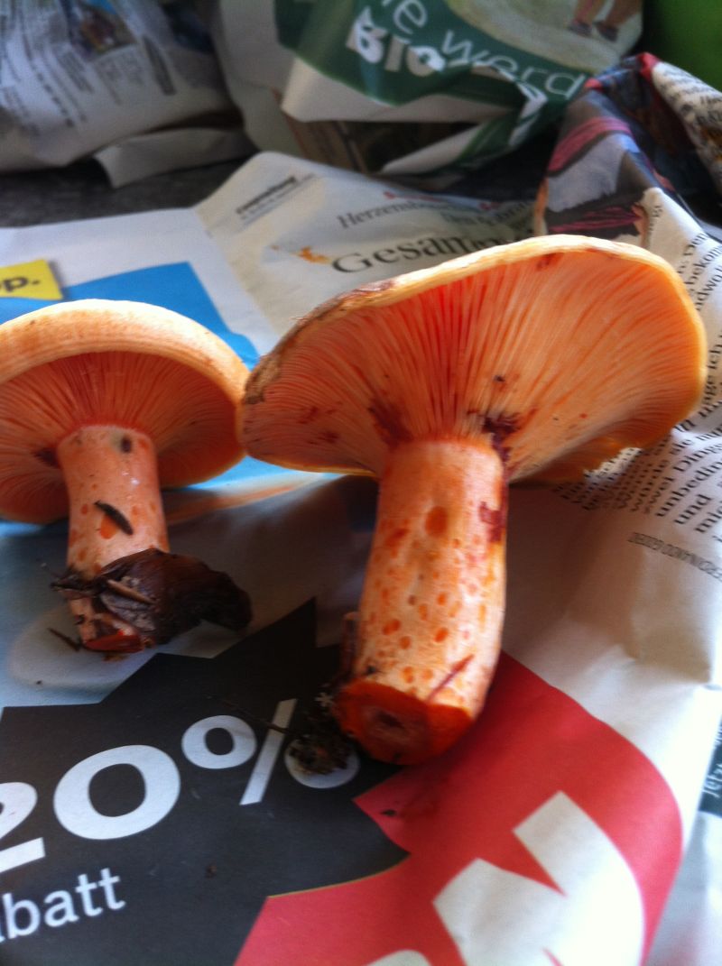 Ausserdem hatte ich das Glück dass mein Freund eines Abends nach Hause kam und mir erzählte, er habe in seinem Waldstück tonnenweise Pilze. Und tatsächlich.. Rotfuss-Röhrlinge, ein paar Maronen und kiloweise Herbsttrompeten..