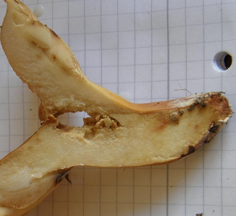 Lactifluus oedematopus ist überigens mit hoher Wahrscheinlichkeit kein Synonym zu Lactifluus (Lactarius) volemus. Die HDS ist anders (Haare viel kürzer als bei L. volemus und L. subvolemus) und in Stammbäumen trennen sich alle drei gut auf.