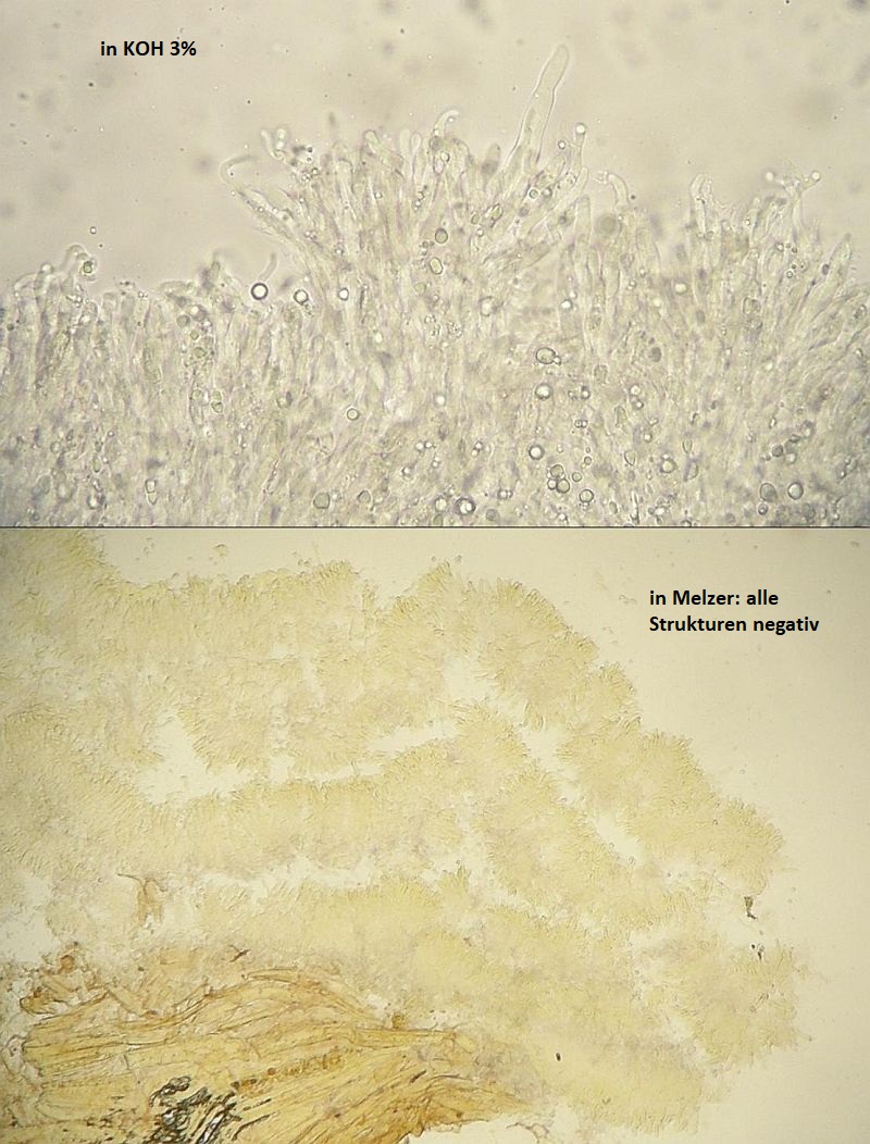 Die cremefarbenen Fruchtkörper mit den rosalichen Flecken bieten eine gute Möglichkeit zur makroskopischen Voreinschätzung. Trotzdem mikropflichtig, weil nämlich die rosa Flecken auch fehlen können, oder unverschämterweise auch bei anderen Pilzen auftauchen können (zB durch bakteriellen Befall). Darum auf jeden Fall mikroskopiepflichtig.
