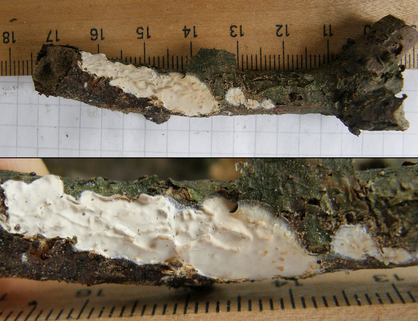 Hyphoderma cremeoalbum = Cremeweißer Rindenpilz